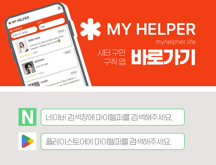 그렇기에 필리핀 시터 구하는데 연고가 없어 구하기 어려웠거나 시터 자리를 찾는데 어떻게 찾을지 막막하다면 이제 마이헬퍼로 이용해보세요.