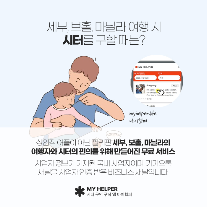 급하게 필리핀 여행을 떠나게 될 경우 더욱 시터를 하는 데 어려움이 있을 것인데요, 우리 아이를 맡기는 것이다 보니 여러 모로 고민이 될 수 있습니다. 직접 알아보고 싶어도 대부분 시터를 찾는게 힘들고 그렇지 못할 것인데요.